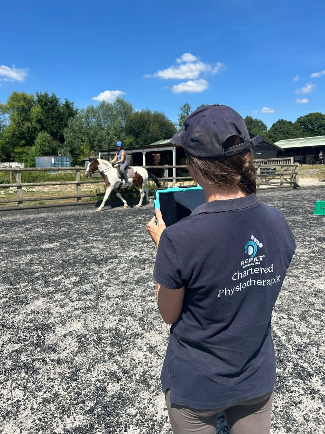 Assessment of a human may entail observation of postures both ridden and on the ground, functional movement patterns and strength. Muscle lengths, joint ranges of movement, palpation and any specific tests are assessed for the person’s complaint.
